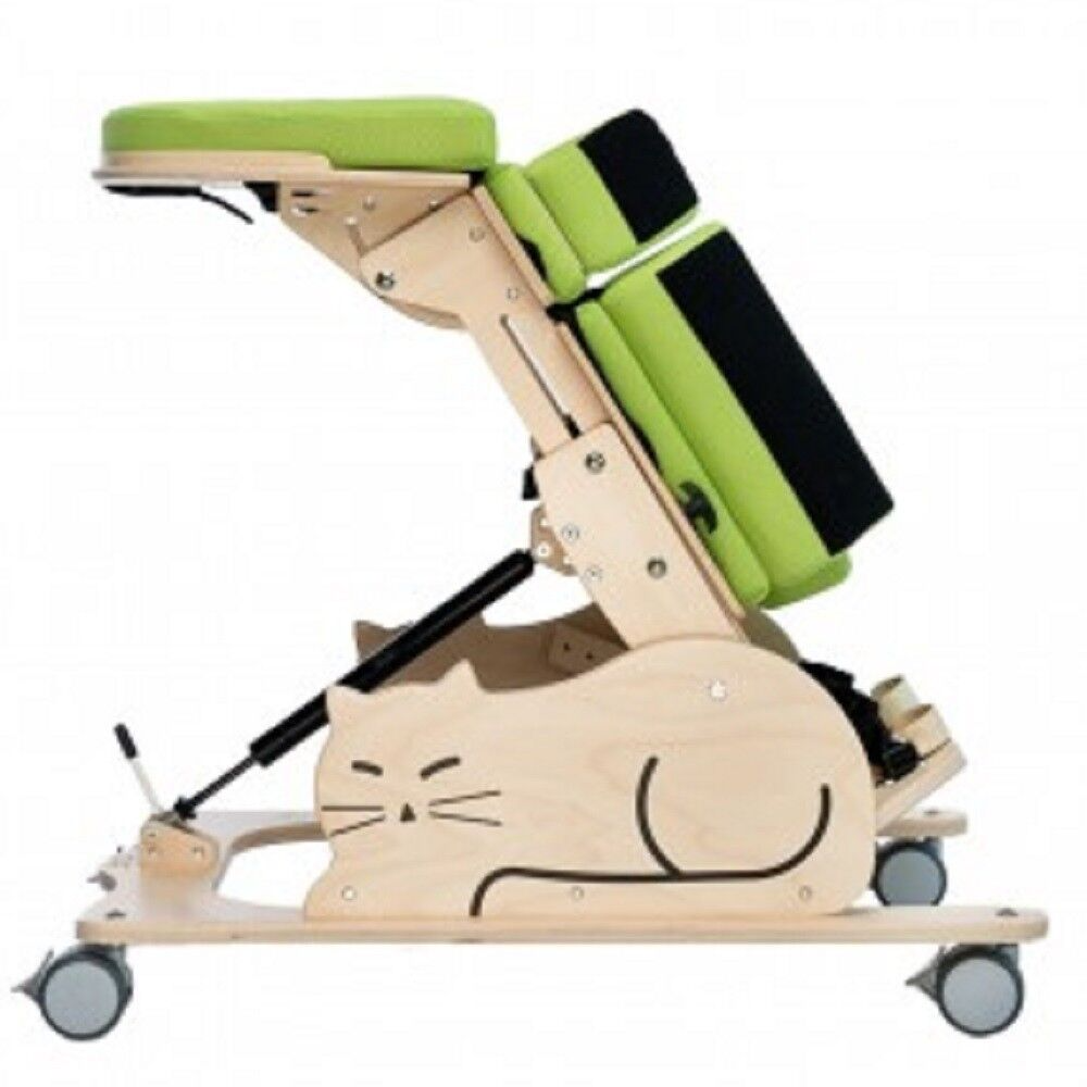 CAT I™ modeli, 25° ile 85° arasında ayarlanabilir tilt açısı sayesinde çocuğun ihtiyacına göre kademeli bir pozisyonlandırma imkânı sunar. Bu özellik, cihazın hem yeni başlayan kullanıcılar hem de ileri seviye rehabilitasyon sürecinde olan çocuklar için güvenle kullanılabilmesini sağlar. Ayarlanabilir göğüs ve pelvik destekleri, çocuğun vücut ölçülerine uygun şekilde konumlandırılarak maksimum stabilite ve konfor sağlar.